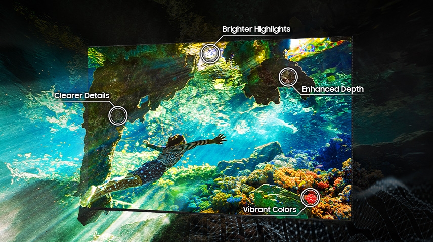 Grâce à l’IA Samsung, chaque scène est analysée et optimisée pour offrir des couleurs éclatantes, des détails précis et une image plus riche et lumineuse.