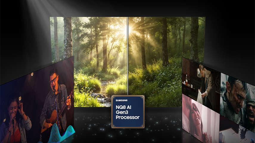Grâce à l’IA Samsung, le son s’adapte à votre contenu et à votre environnement, puis est remastérisé pour plus de précision.