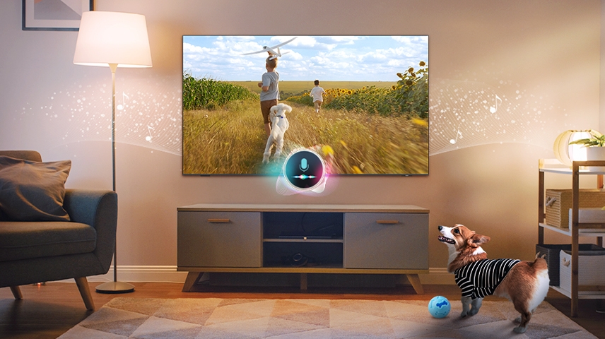 Grâce à l’IA Samsung, votre téléviseur détecte les sons comme les aboiements et diffuse automatiquement le contenu préféré de votre animal.