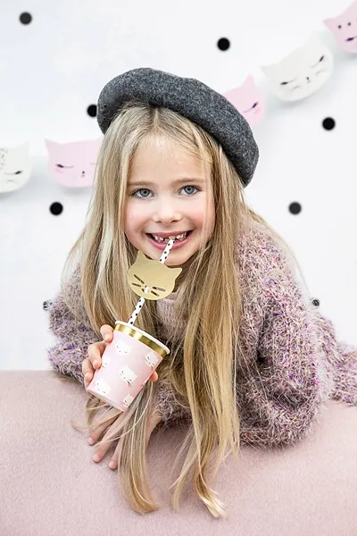 6 Gobelets en carton chaton roses et blancs 200 ml