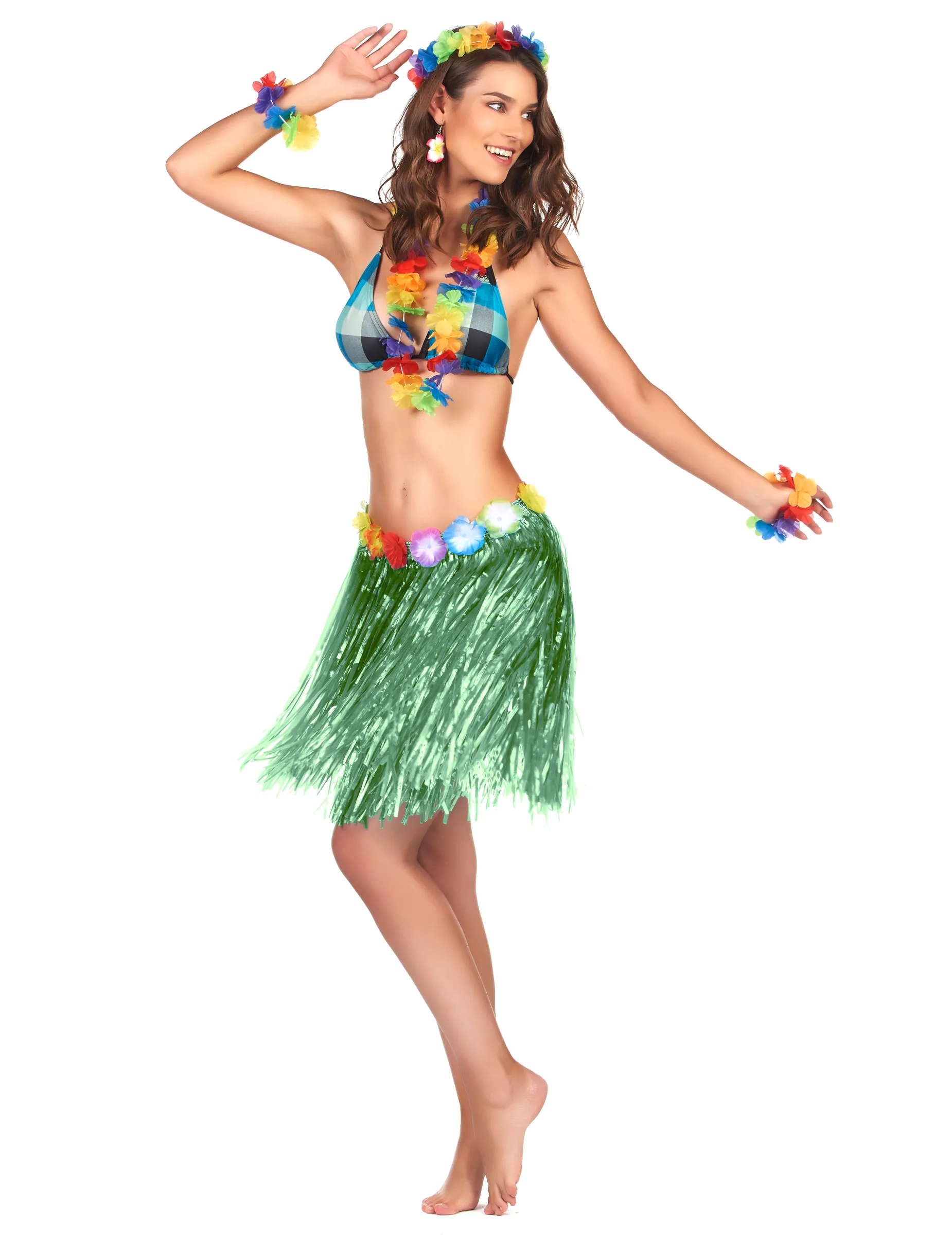 Jupe hawaïenne courte verte adulte