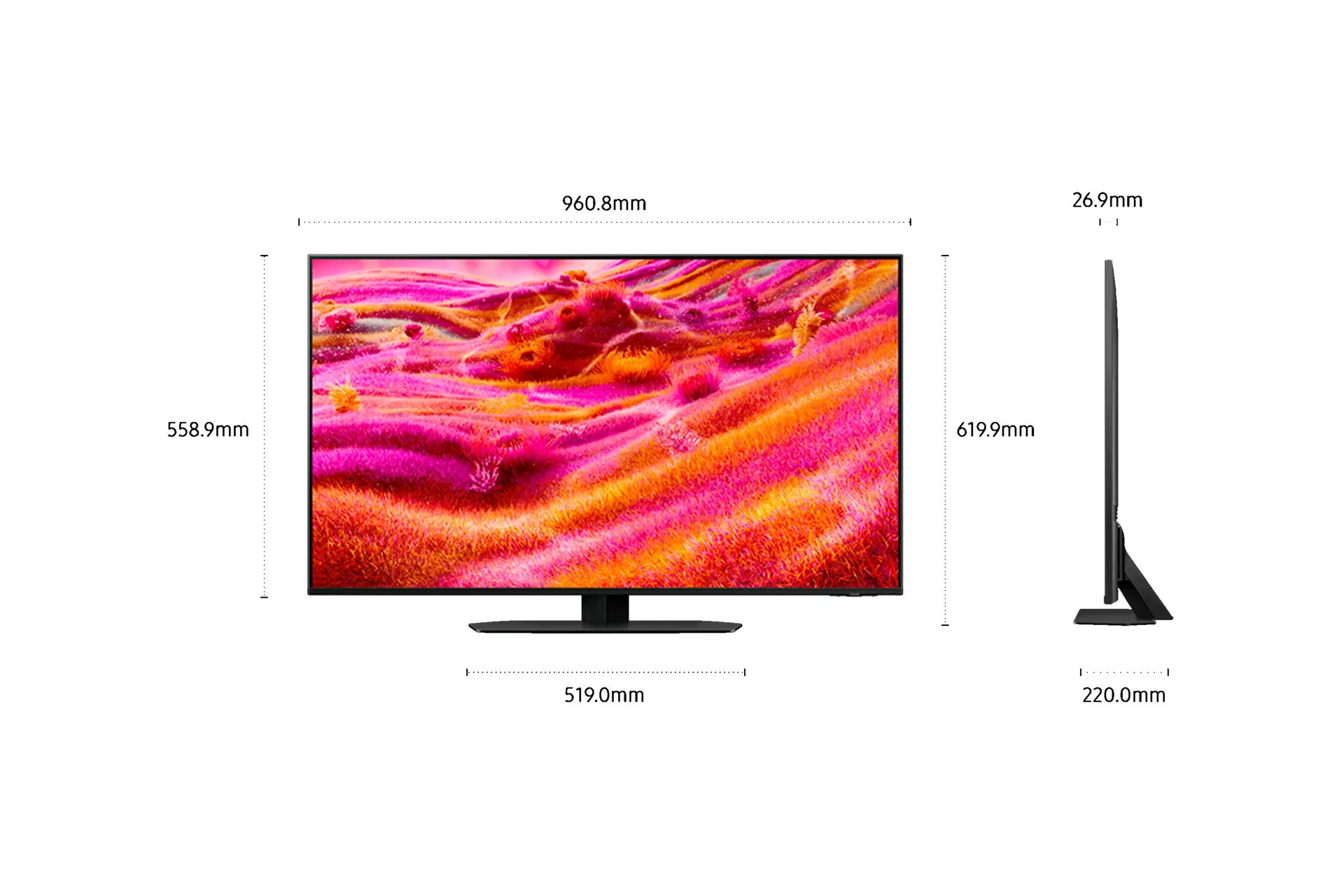 | Fonctions du jeu | Mode de faible latence automatique (ALLM), Dynamic Black EQ, Game Motion Plus, Hub de jeux, HGiG, Mini Map Zoom, Super Ultra Wide Game View, Surround Sound, Taux de rafraîchissement variable (VRR) |